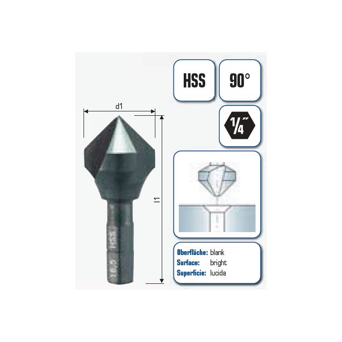 HSS KEGELSENKER 90° MIT 1/4"-SECHSKANTSCHAFT